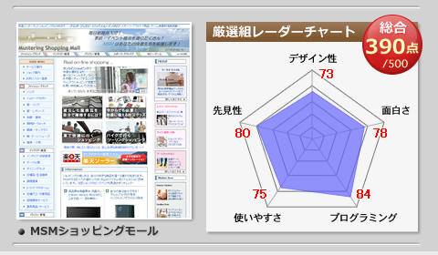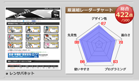 アフィリエイトに関連するサイトを独自に審査し、5つの項目別に点数を付けレーダーチャート方式でその統計をご紹介。