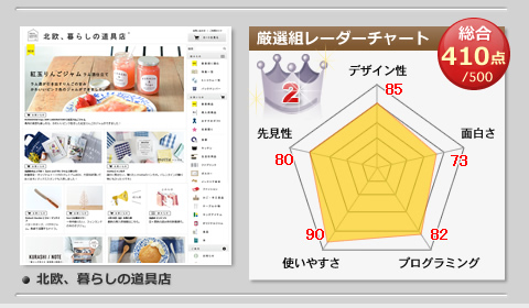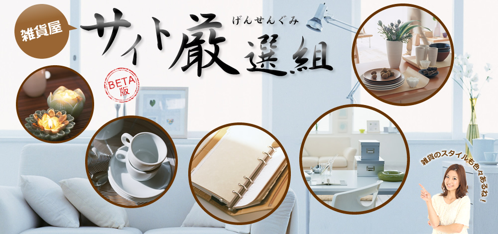 雑貨屋サイト厳選組は、沢山の雑貨屋に関連するサイトを独自に審査し、レーダーチャート方式でその統計をご紹介。