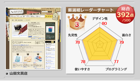 文房具を広げた机の上でサイトを見ているような気持ちにさせてくれる、 遊び心ある素朴なデザインが好印象です。 品物の種類で探したい人にも、メーカーで探したい人にも分かりやすく、 欲しいものに辿り着きやすい導線ができていると思います。購入者が気になる送料の...